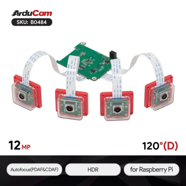 Arducam 12MP IMX708 Quad-Camera Kit (wide-angle stereo synchronized) → ~$250–$300
